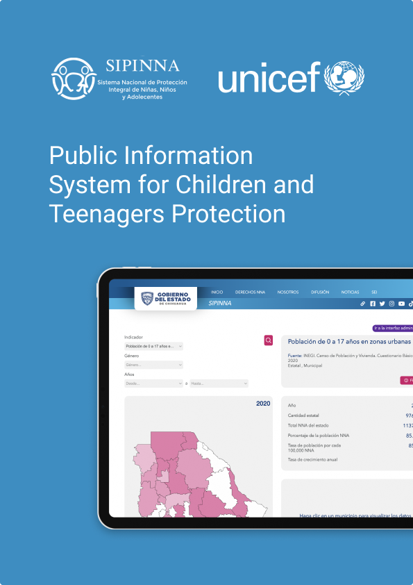 According to the the new article 125, fraction XV of the General Law for the rights of kids and teenagers of México(El artículo 125, fracción XV de la Ley General de los Derechos de las Niñas, Niños y Adolescentes) -LGDNNA from now on- Mexican public organism has to be able to provide an easy and reliable system where any user should be able to access KPI for teens and children in their respective state, guaranteeing a clear and complete data display. The new KPI and ADMIN tool comprised essential components to handle the integration, display and relation of collected data from the different government and ONG teams, being able to organize them by different categories, municipalities, years, different government and non government organization. With a secure and optimal ADMIN system with a configurable access level based on specific actions(create, update, delete) and specific roles(based on the resources list that are accessible). Users can integrate different categories or teams in their database without compromising previous data and having an standard record production that would seamlessly work across all needed areas in the ADMIN and Public pages. By addressing these critical needs, Relief Applications contributed to the UNICEF mission of guaranteeing the children's rights and their public visibility in an accesible and consistent way, plus contributing to Chihuahua state's SIPINNA team on being in compliance with the new LGDNNA
